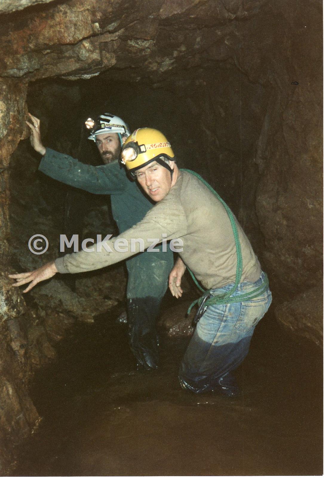 Steve Wadlan 9left) and Alan Tomlin in the adit of Frementor 12/7/1989.