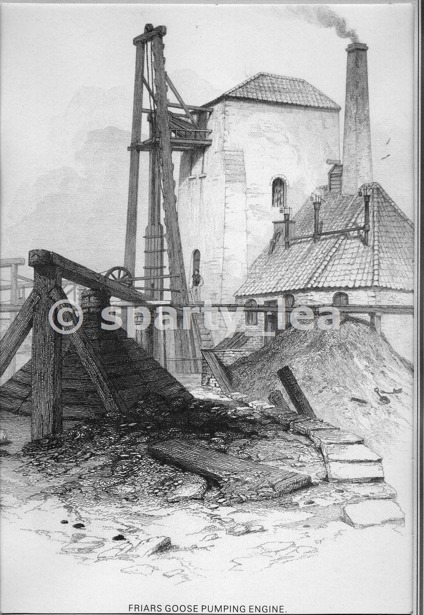 The large pumping engine at Friar's Goose was important in keeping the workings of several neighbouring collieries unwatered. Photograph of an original etching by Thomas Hair, that is now out of copyright