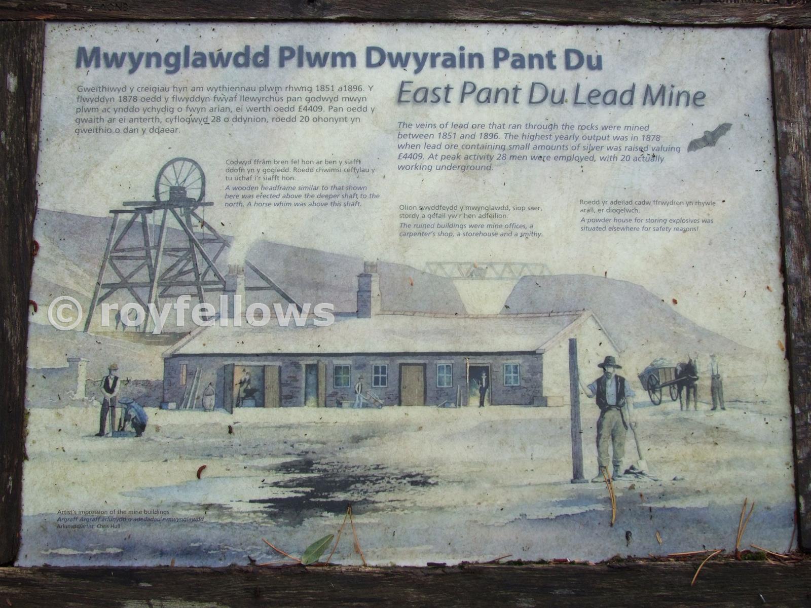 Beyond is the high mound shown on the right, but I have doubts about it being a spoil tip. There is a shaft on the left of it, and another on the right of the track beyond, but logically spoil would have been dumped down slope of the shaft, it would have needed a very high headframe and tramway to match the height of the supposed tip. I doubt very much that the board gives any kind of accurate representation of the mine.