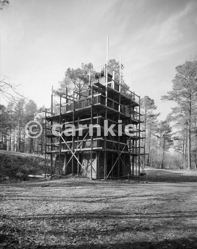 VIEW LOOKING WEST AT FURNACE STACK SHOWING SCAFFOLDING FOR REPAIRS. Courtesy Library of Congress, Prints & Photographs Division, HAER, Reproduction number HAER MD,24-SNOHI.V,2-1