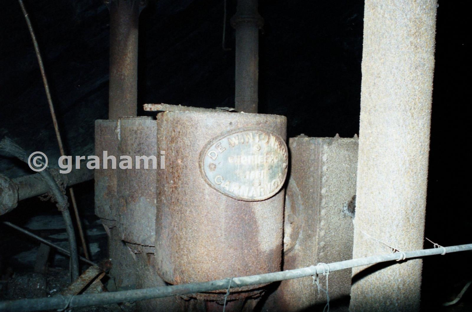 Mounted on the top end of the pump barrels, DeWinton's works plate gives the date of building - 1895.