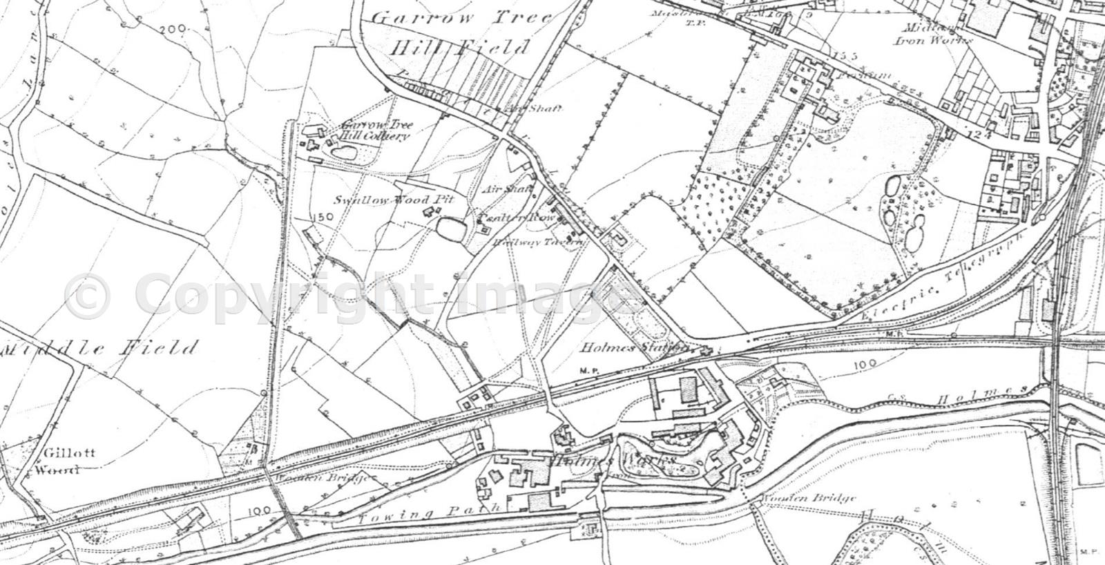 Garrow Tree Hill Colliery and its tramway to the canal c1850. Also shows Swallow Wood Pit.