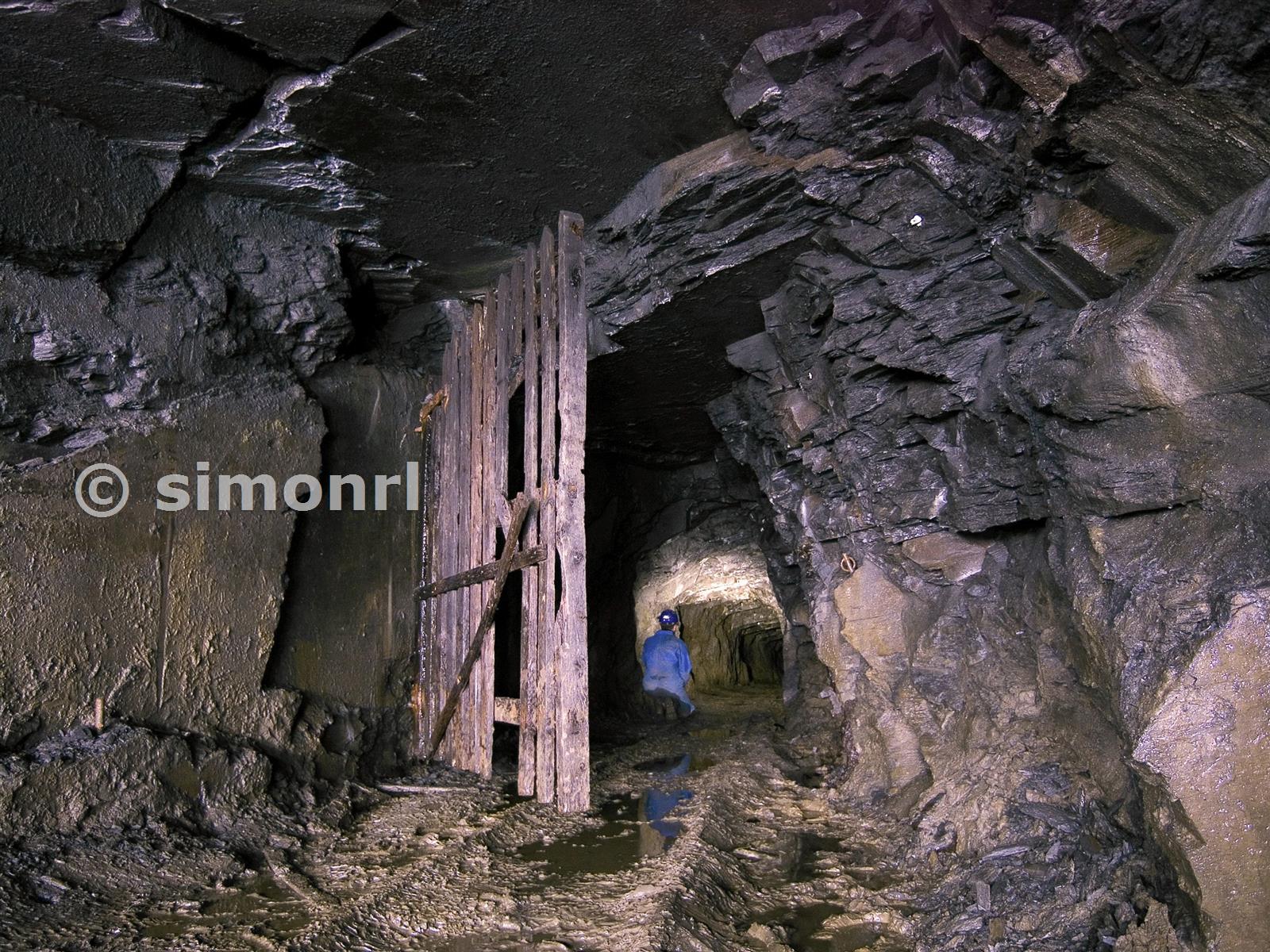 Gate on main drift, floor 5, just beyond wall one chamber in from air shaft Moel Fferna Slate Mine May 2010