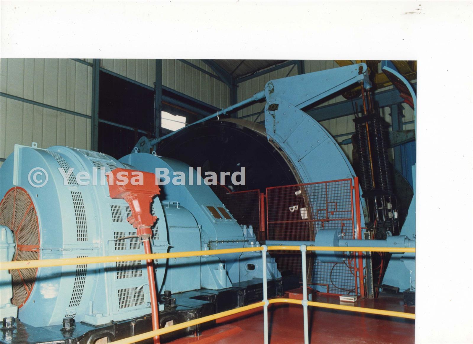 This is a view of the Drum and the No1 motor of this twin motor drive AC 2750 HP 6600 Volt Metropolitan Vickers winding engine which started its life at Wellesley Colliery in Fife 1955 and was dismantled and transferred to Gedling by rail in early 1970 to replace the Bever Dorling steam winder. The No2 Steam winder had been re conditioned with new cylinders by Markham of Chesterfield in 1966. The Electric winder was sited behind the steam winder and a flat roof put on the steam winder to allow easy changeover when the replacement winder was complete.