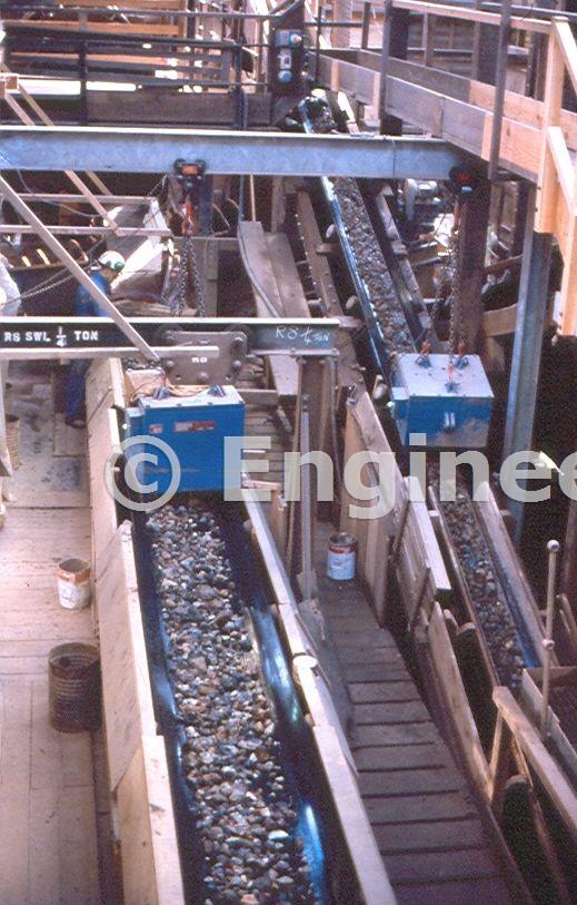 Picking belt in the washing plant , note magnets to remove tramp irom to protect cone crushers