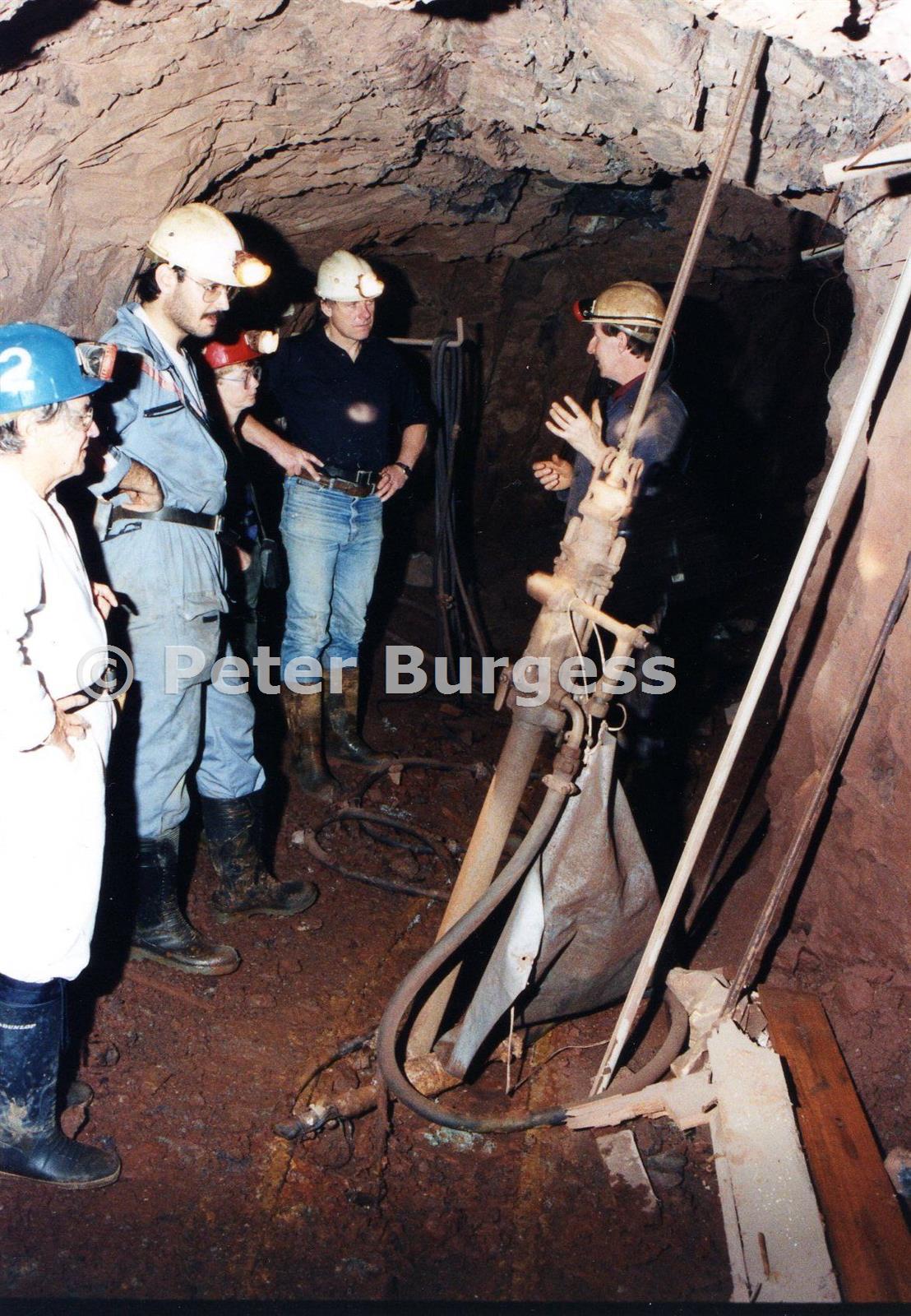 Rock drill abandoned in February 1990 in 18 level on Treglowns Lode (?)