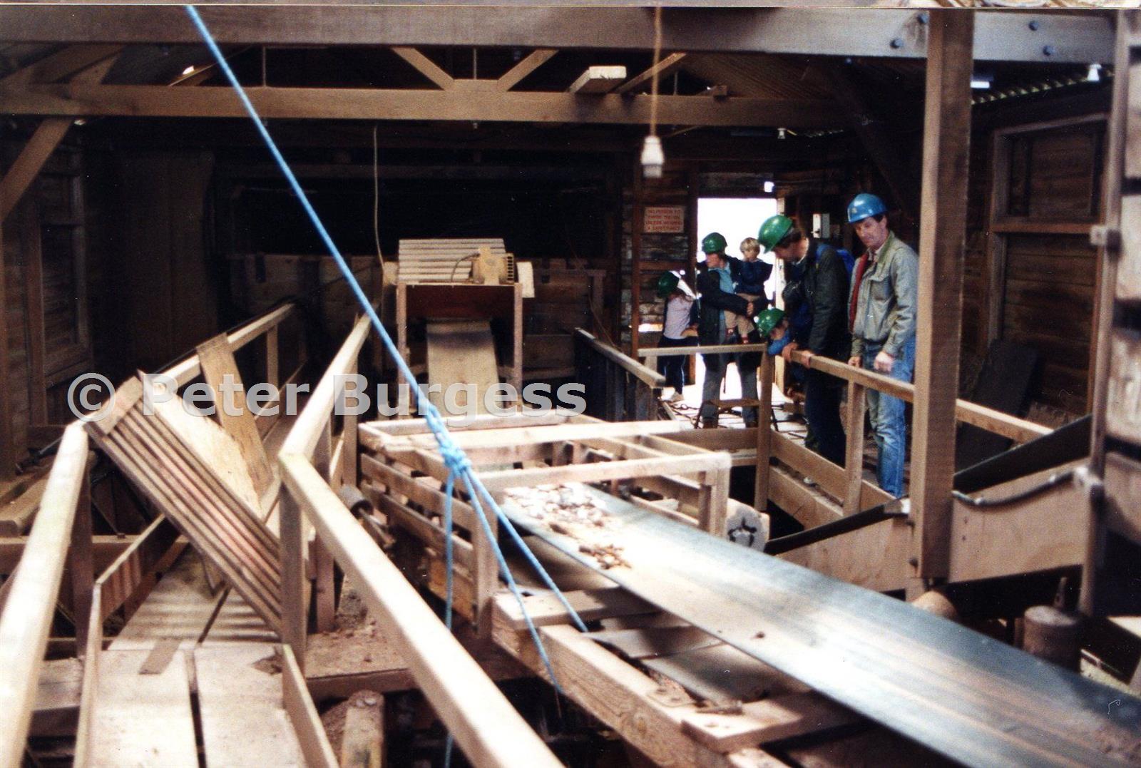 Ore handling conveyor belts, Victory Shaft 1991. Laurie Done and family are shown around by Eric Gale.