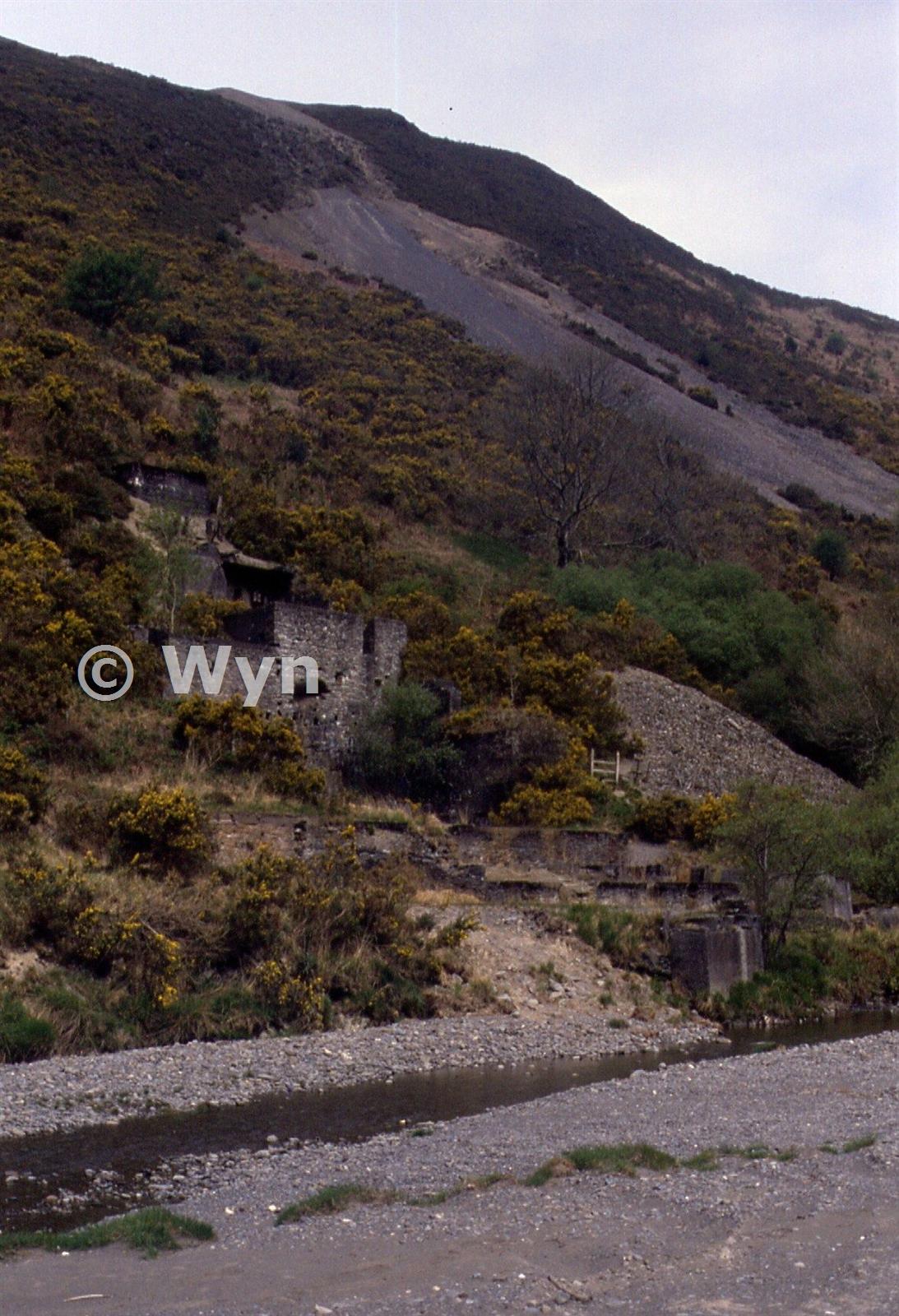Taken from Afon Ystwyth, there is an open adit higher up the hillside.