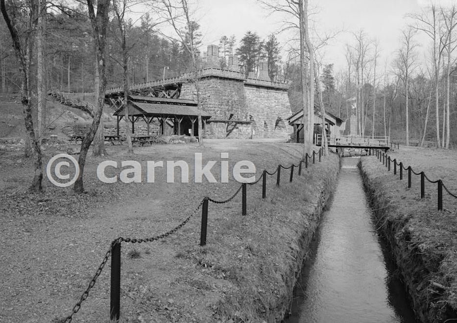 GENERAL VIEW OF FURNACE COMPLEX AND RACEWAY. Courtesy Library of Congress, Prints & Photographs Division, HAER reproduction number HAER ALA,63-BUCK,2-2