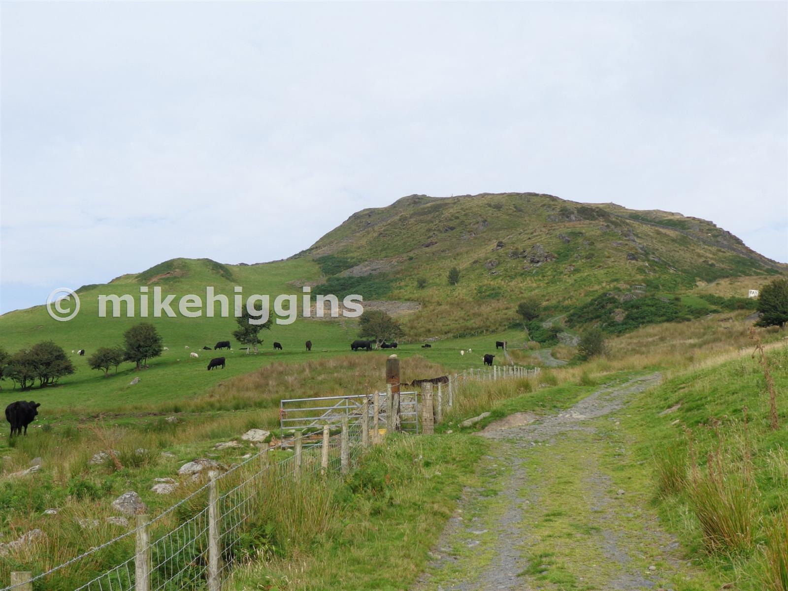 General view of the eastern part of the workings showing the spoilheaps from the adit and shafts. I believe there are one and possibly two further adits at a higher level but I was short of time on the day. The track on the right leads to Llyn Barthog. Note the very large bull in the centre of the photograph!