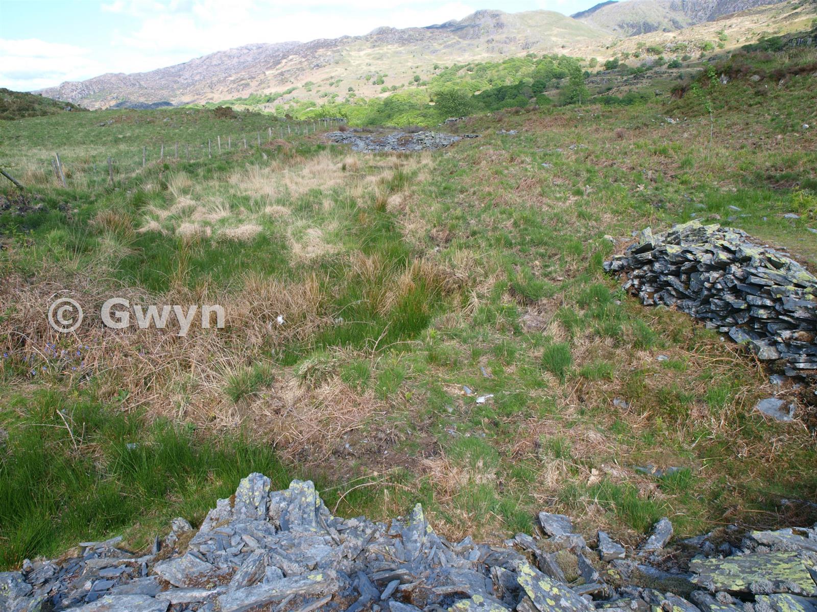 Possible remains of water holding pond (?) on top level. May. 2010.