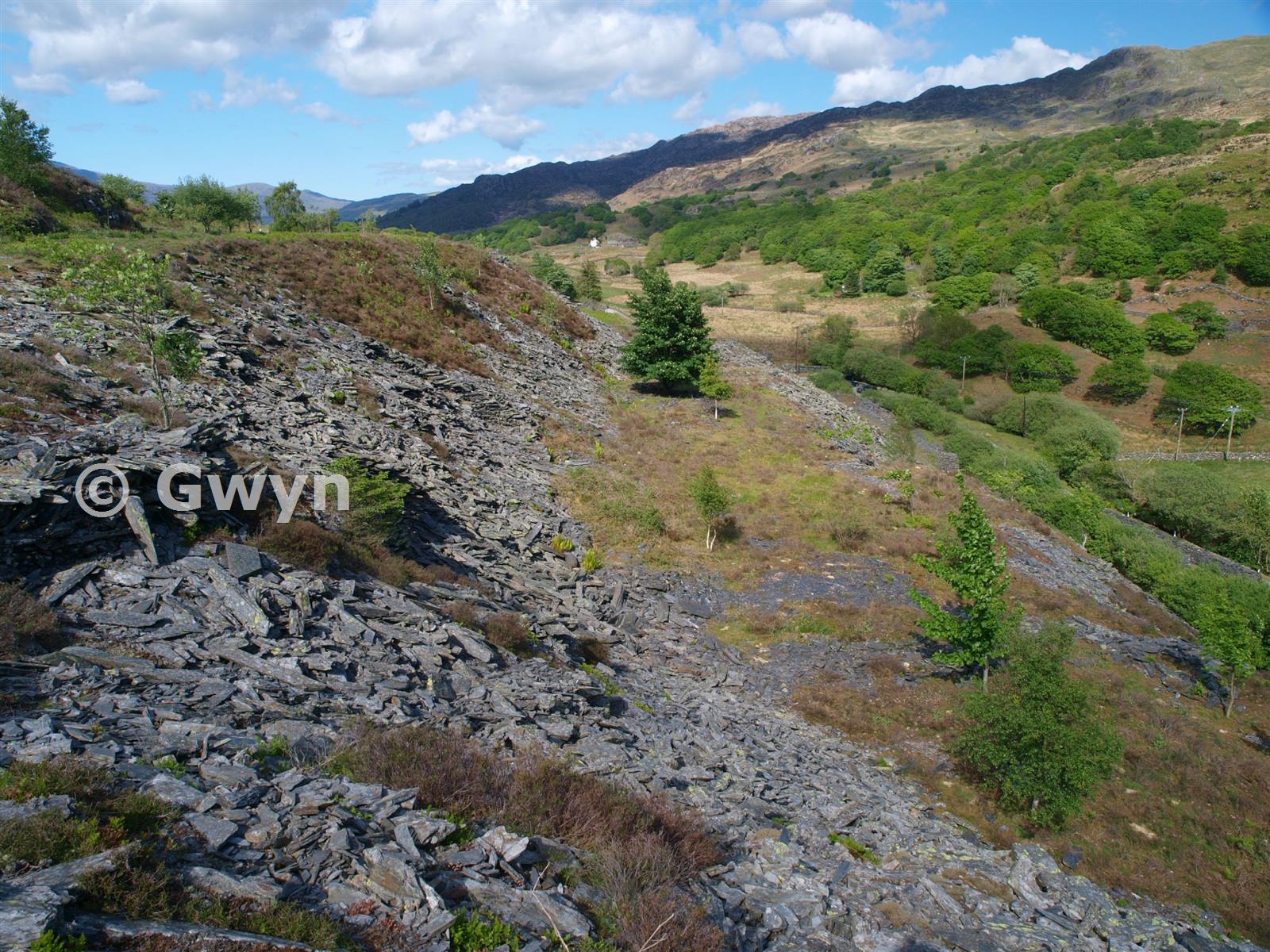 Landscape view looking NE. up Blaen Nanmor along the tip runs. May. 2010.