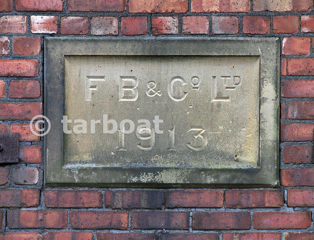 Plaque on the end wall of the former baths at Gibfield Colliery. Coal owners Fletcher Burrows & Co Ltd erected the first purpose built colliery bath house in Britain at Gibfield Colliery in 1913 after a trial of an adapted building at their Howe Bridge Colliery. The colliery closed in 1963 but the building survives as a car repair and maintenance garage.