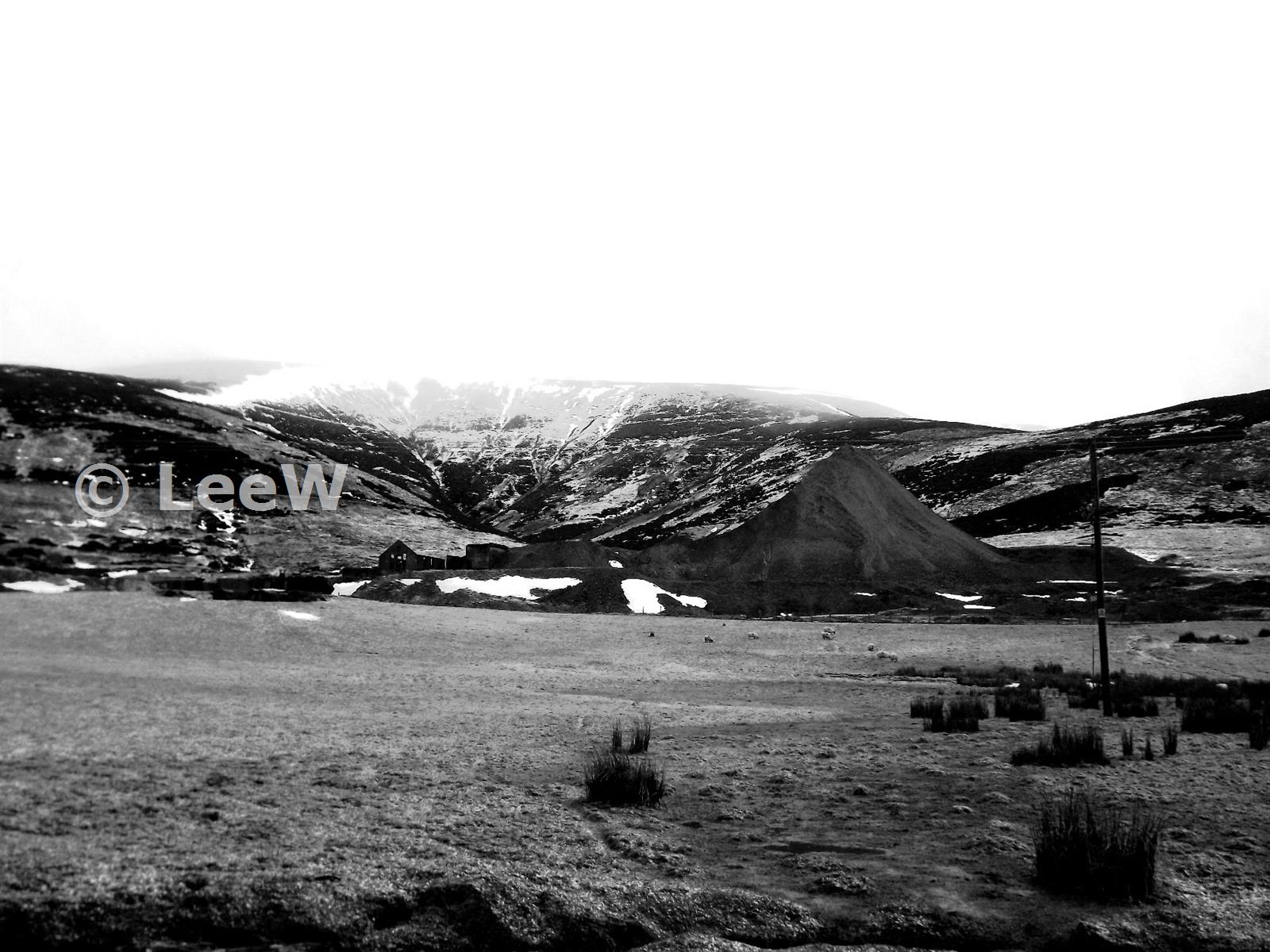 View across the valley to the site of Glencrieff Mine and the pointy spoil tip.