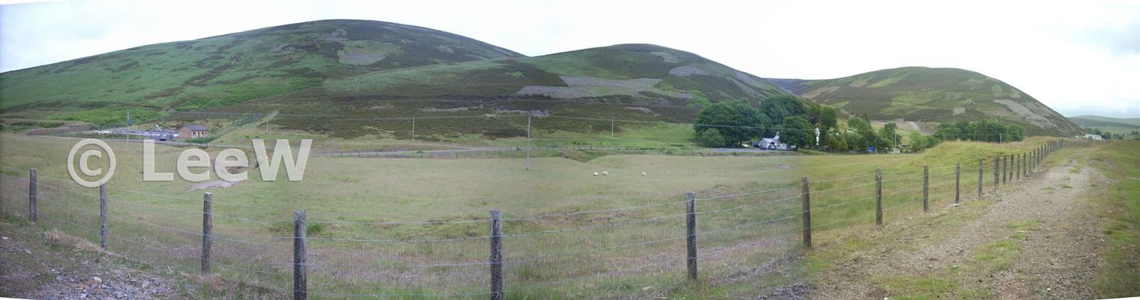 Panorama view of old settlement ponds, the channel from the adit level discharge can also been seen on the left (July 2010)