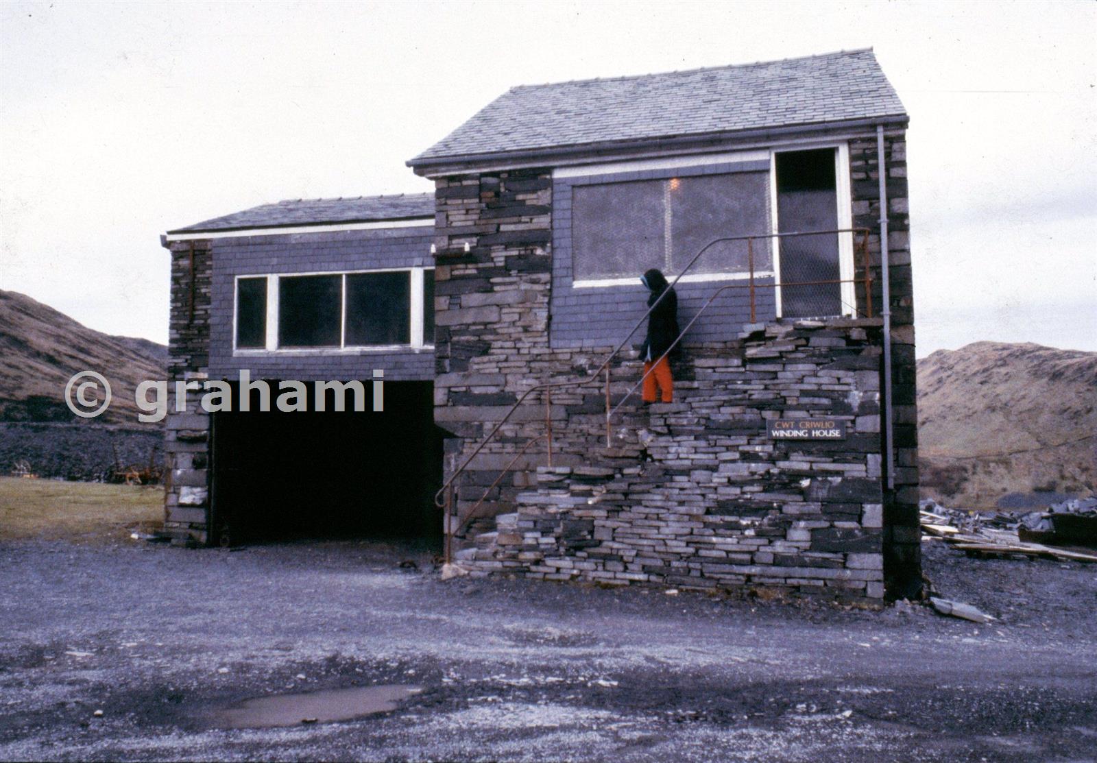 Outside view of the drum and motor house as renovated for display.