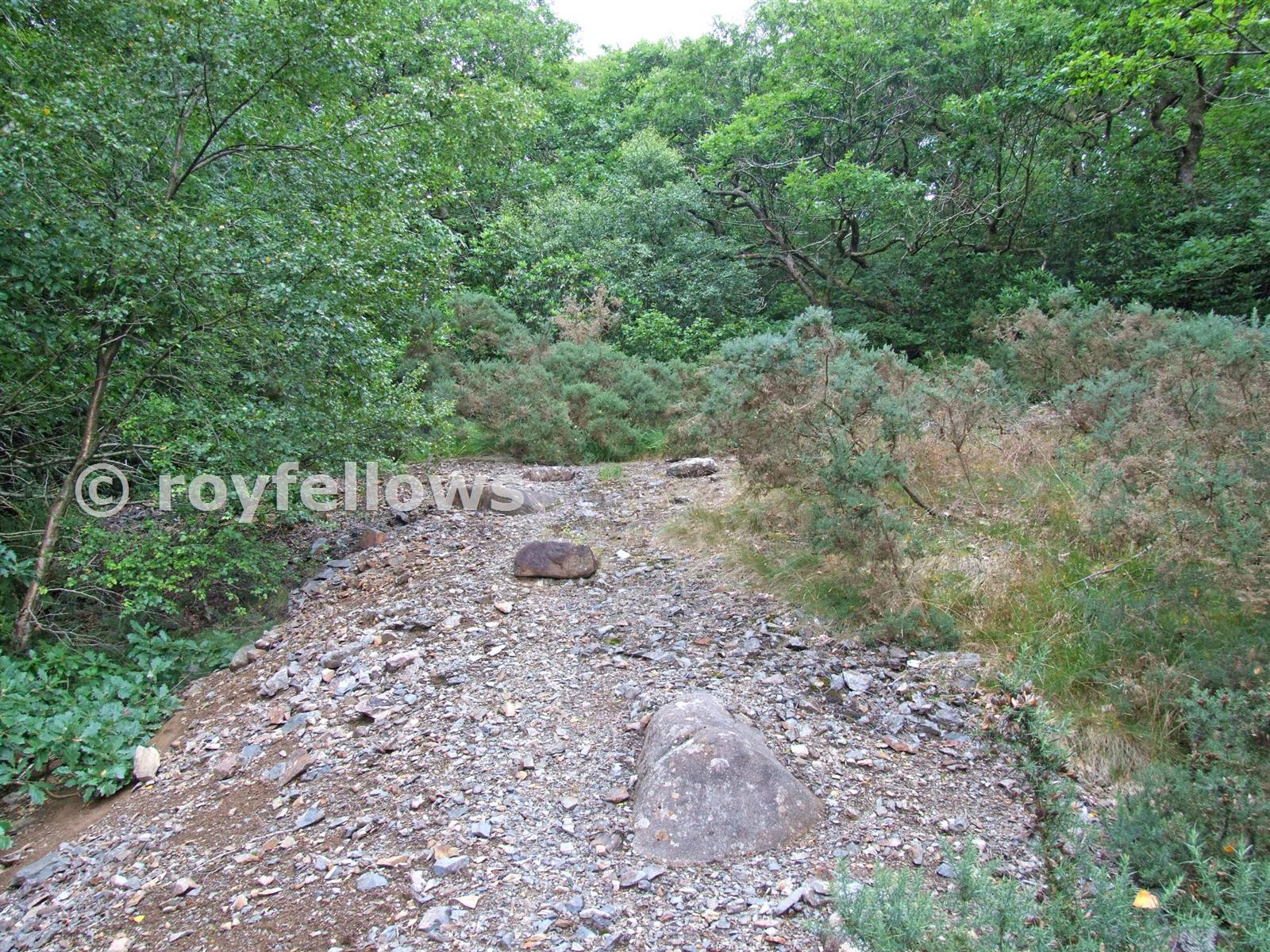 Following the stream uphill through the woods, the spoil is the first indication of mining activity