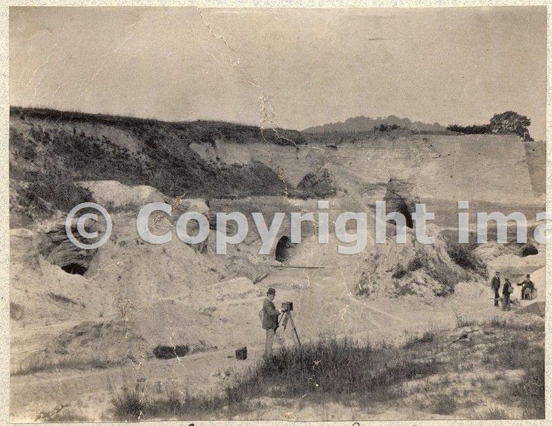 From the NERC photographic collection Photo P233343 Reproduced with the permission of the British Geological Survey ©NERC. All rights Reserved. Photographer H.D.Gower. Caption: Godstone, silver sand pits. Lower beds of the Upper Greensand. This photo shows the large village sand pit with older mine galleries exposed in the sides. The caption is wrong - these sand pits worked the Lower Greensand, Folkestone Beds.