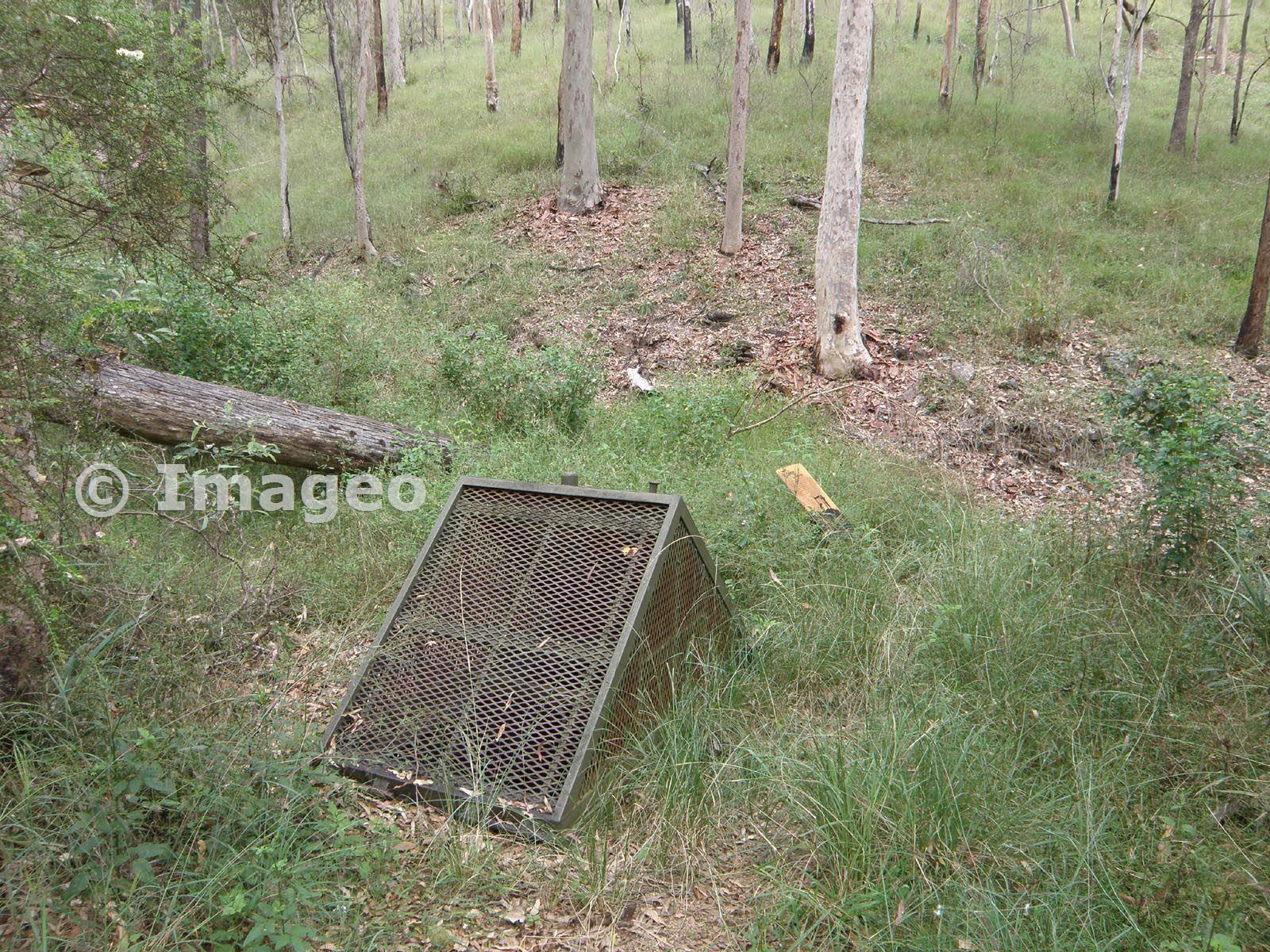 An unusual shaft cover at Golden Boulder. The device is hinged, presumably for inspection.