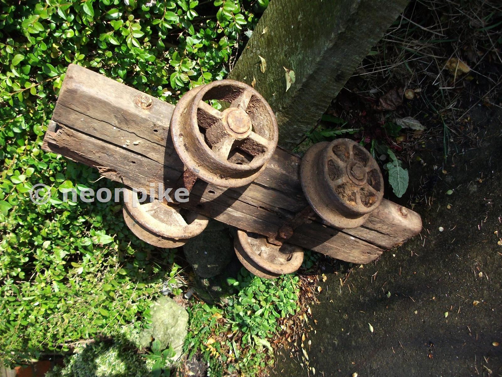 tub remains retrieved from good luck mine , cromford . as well as having odd wheel sets , the axles appear to have purposely been bent to make them fit the gauge of the tracks
