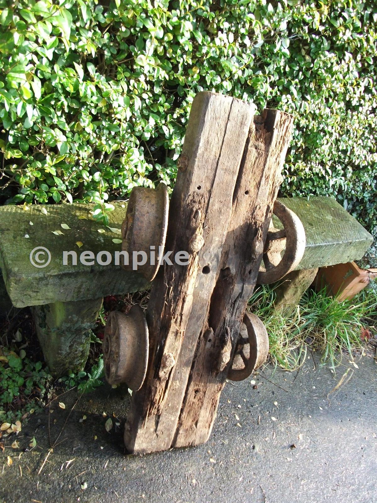 tub base recovered from goodluck mine . apears to have been crudely re-gauged by bending the axles