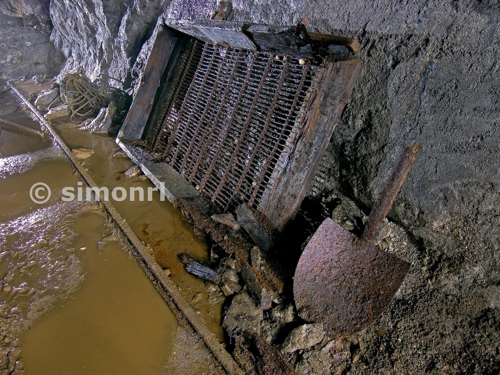 Large sieve for sorting and grading ore, 40 yard level Snailbeach Lead Mine 06/06/2009