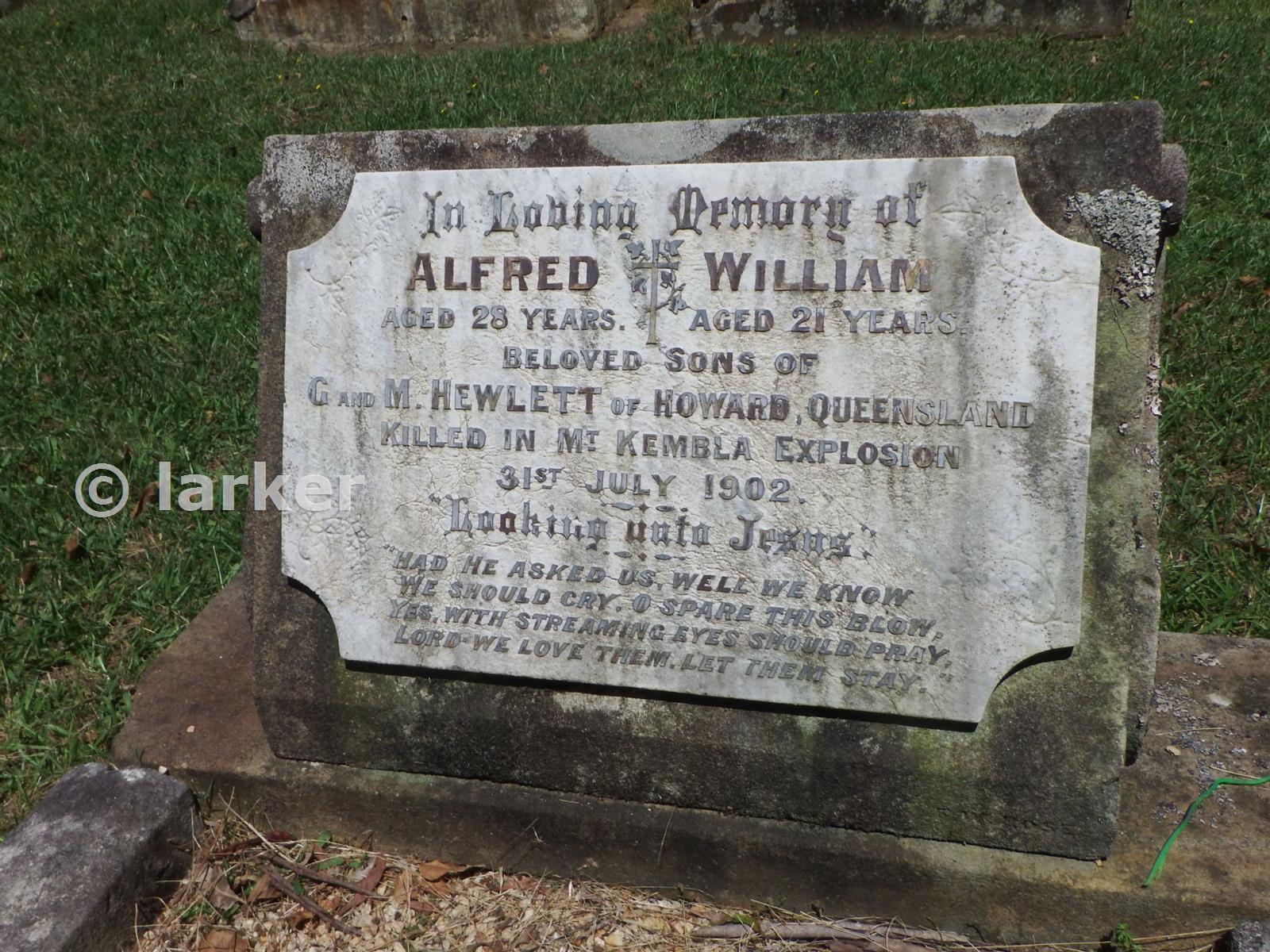 One of many poignant gravestones relating to the 1902 explosion in the Windy Gully cemetery. There are other gravestones in the Mount Kembla cemetery beside the church, and elsewhere.