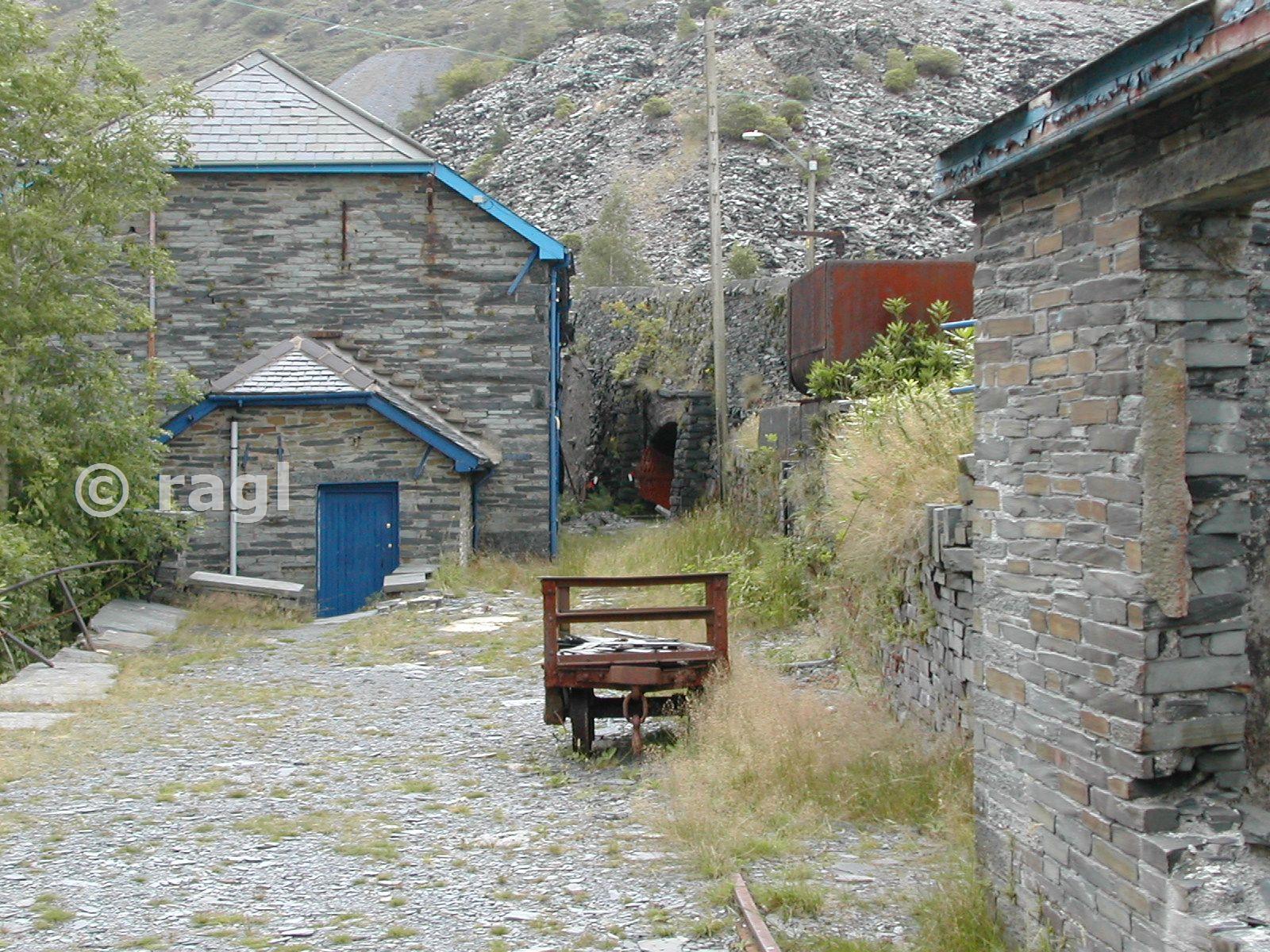 Powe station to left background, weighbridge to right in foreground. Water tank above wagon - for shunting loco?? Tunnel under the road in background behind wagon leads to incline foot for access to quarry.