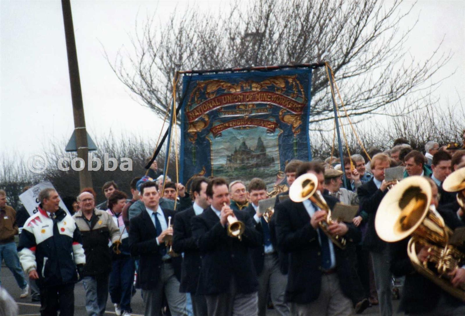 Grimethorpe NUM banner and brass band Grimethorpe march 13/2/93