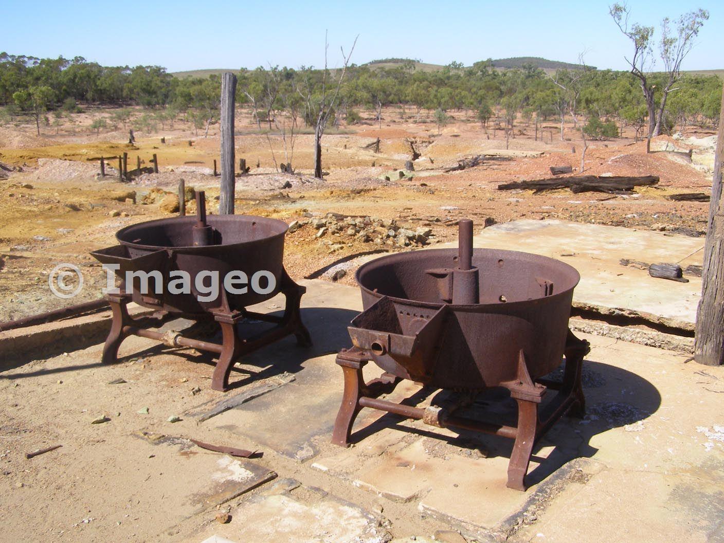 The two remaining pans sitting as they were abandoned on the floor of the old treatment plant.