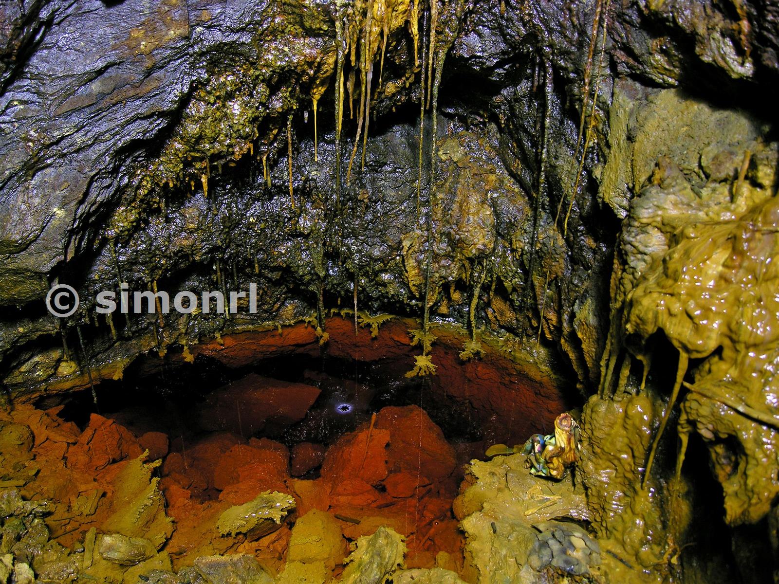 A small grotto of straws and mineral formations / staining. xx fathom level, Parys Mountain copper mine.
