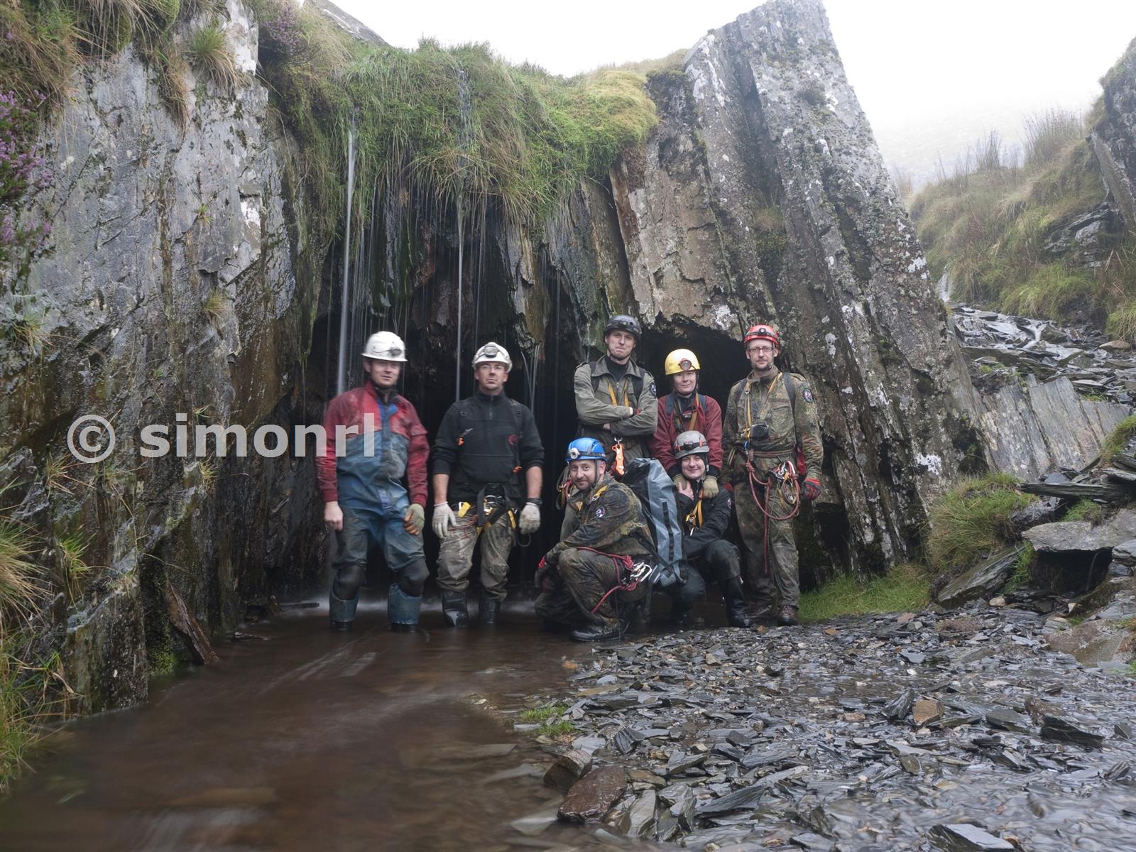 Group photo having made the Croesor Rhosydd Through Trip - outside Rhosydd number 9 adit Rhosydd Slate Mine September 2011