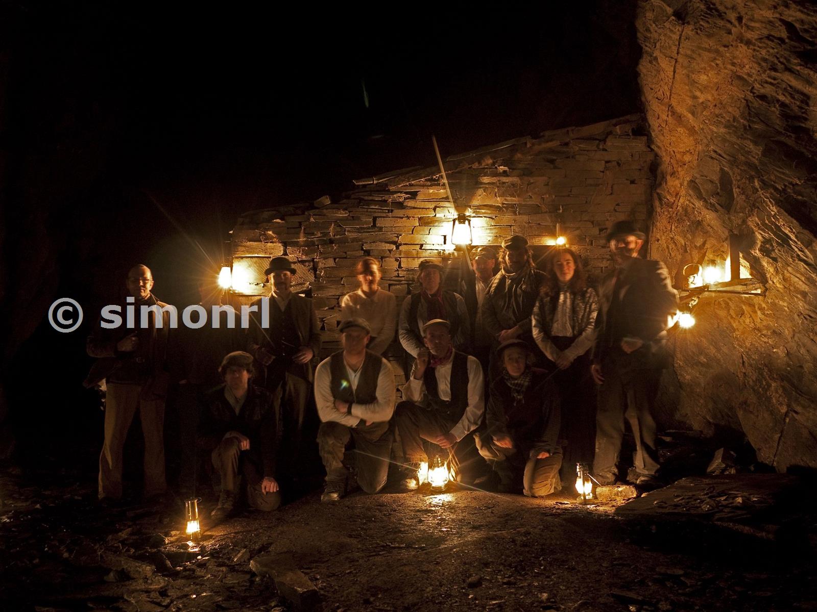 Group photo, caban f floor Cwmorthin Victorian costume day January 2012