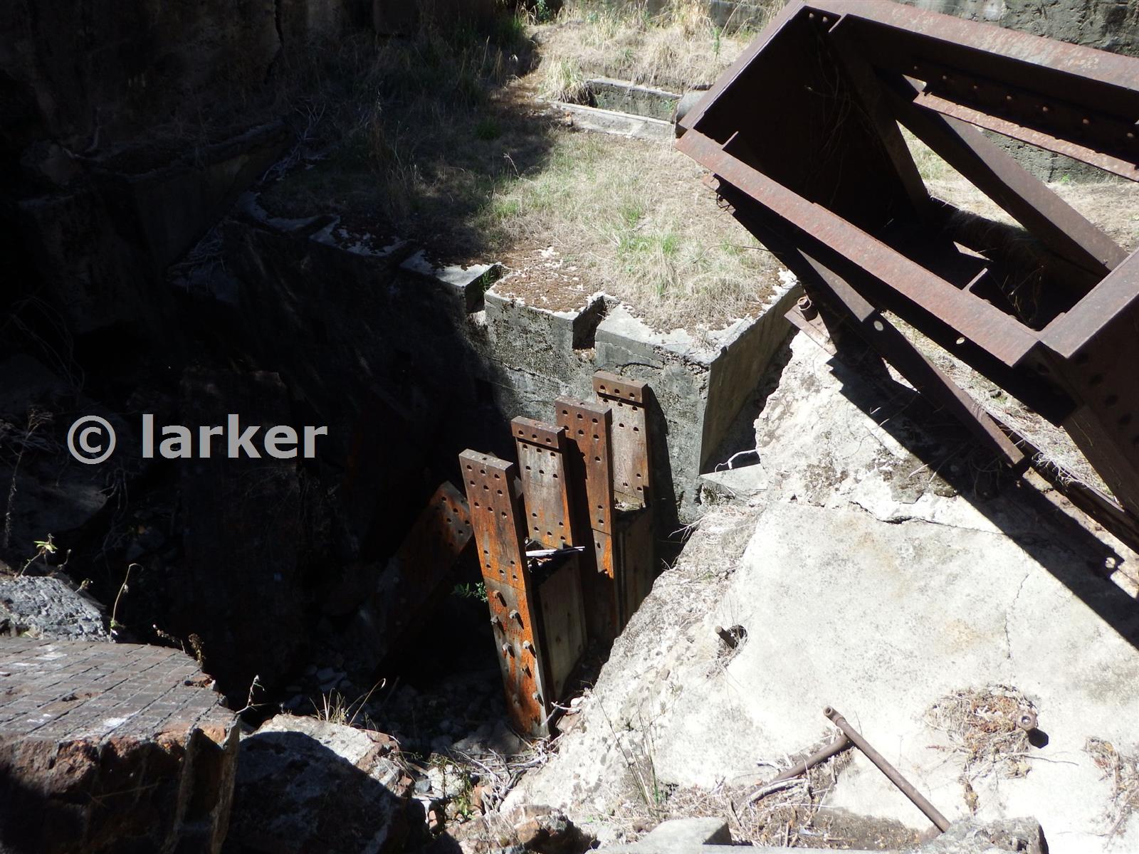 Top of the collapsed Grubb Shaft showing ends of the pumping rods