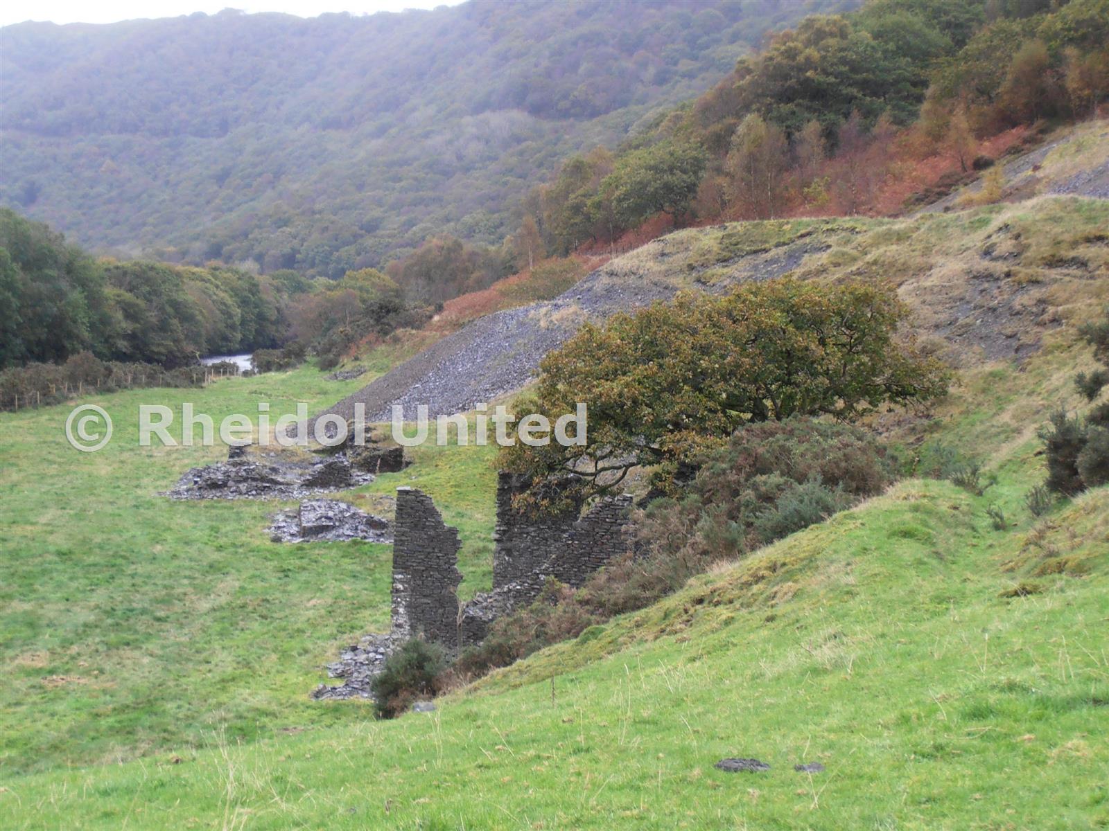 The smithy I believe in the foreground and the tips from the deep adit behind. The waterwheel pit and the crusher house can be seen on the head of the tips.