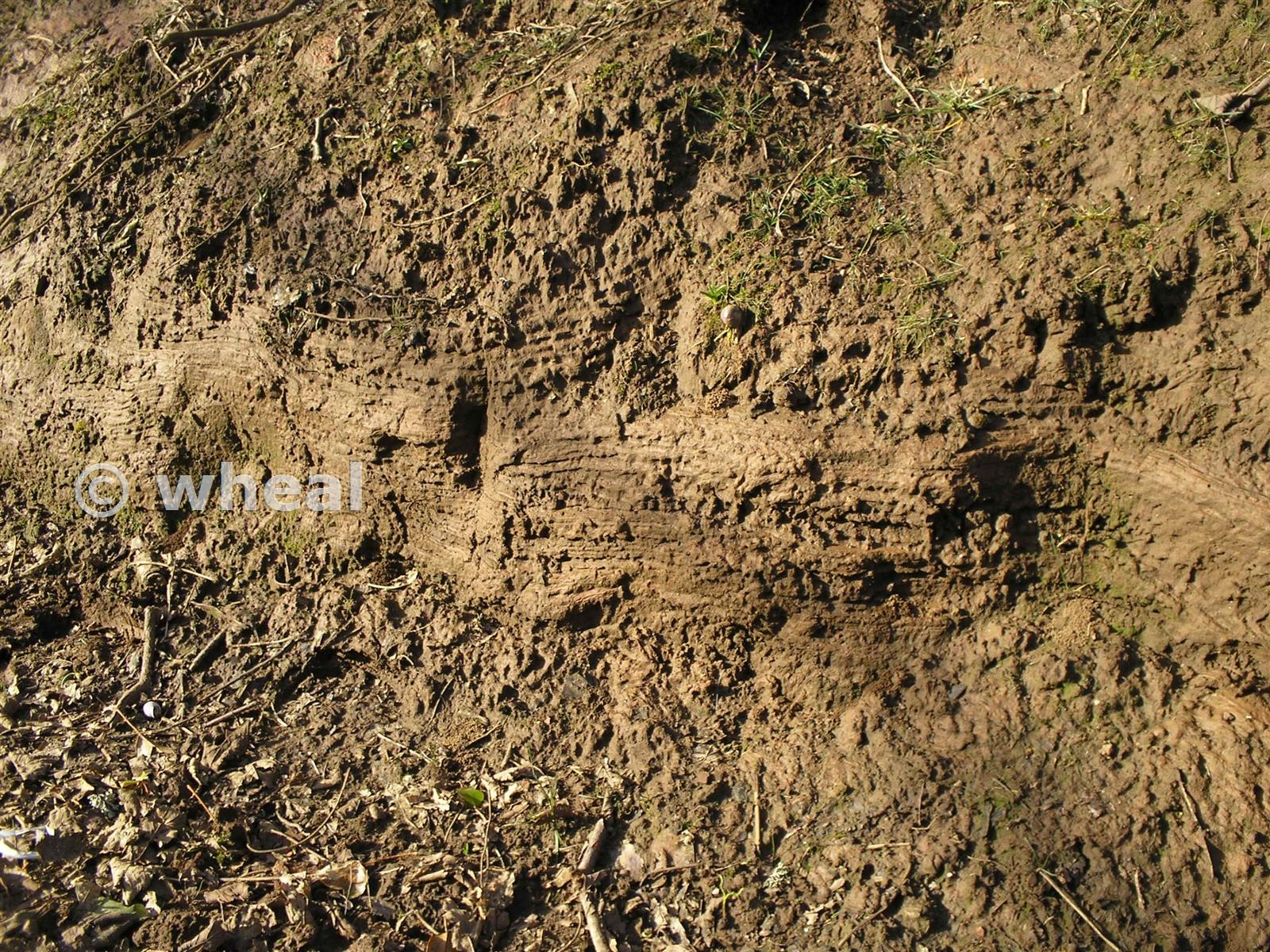 "Slimes" cut through by a recent pathway. On closer inspection these are full of "clinkers" from an engine.
