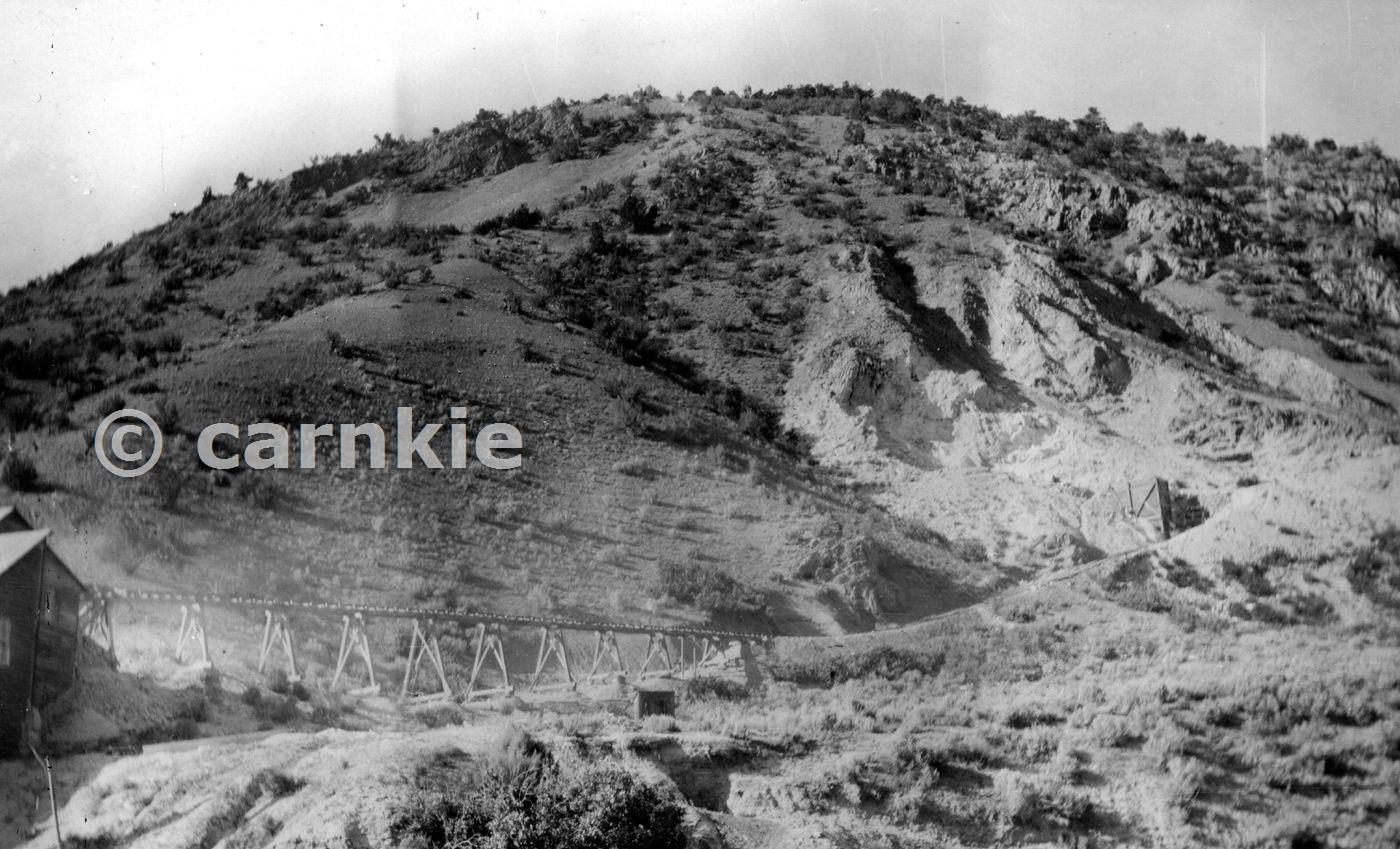 Gypsum quarry on right side of Chicken Creek canyon. Loading bin and tramway trestle to mill. Courtesy U.S. Geological Survey. http://www.usgs.gov
