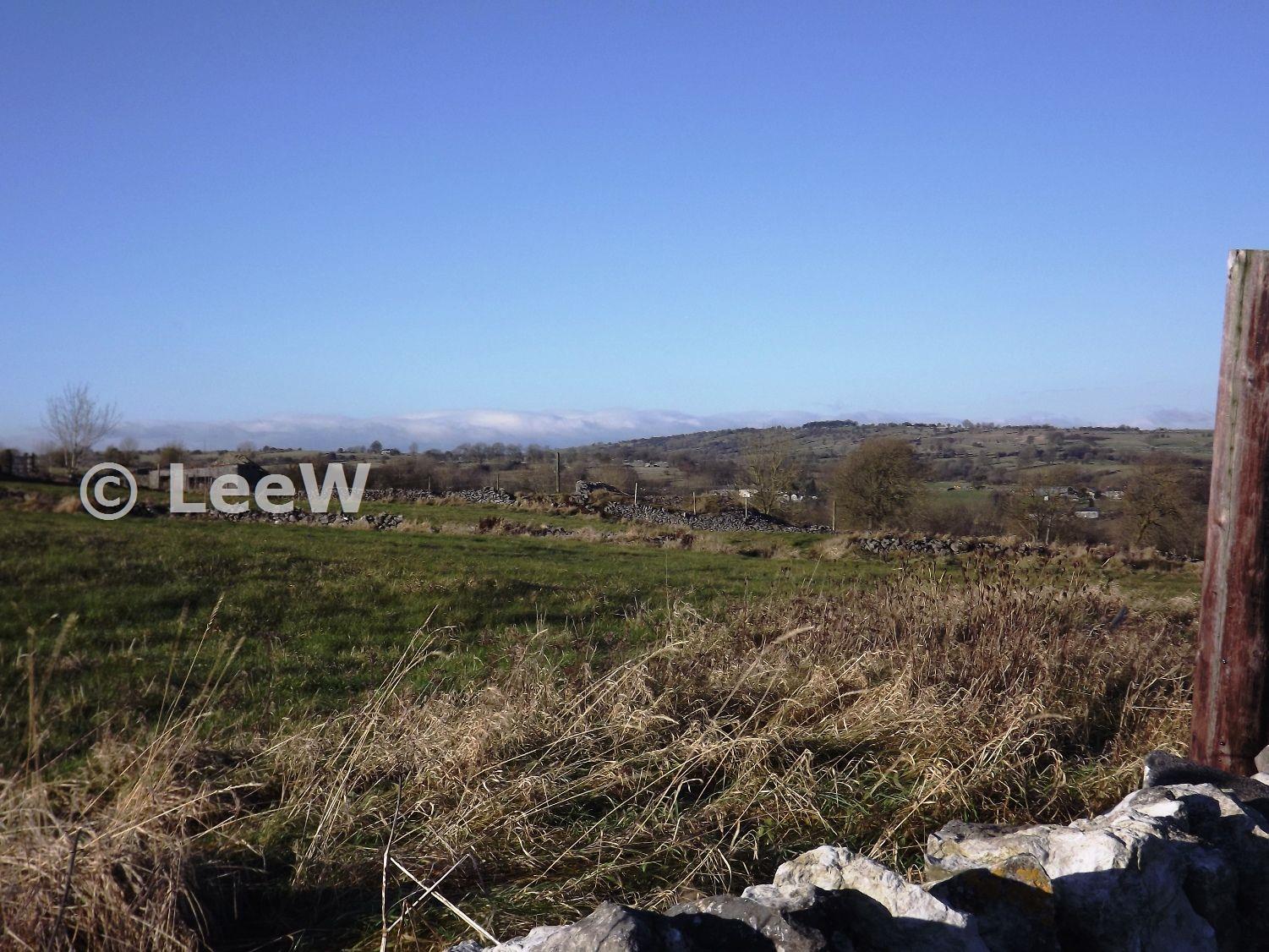 View to a large shaft mound to the northwest end of the vein with either part of a walled belland yard of parts of a coe. Viewed from the Hallicar Lane (December 2012)
