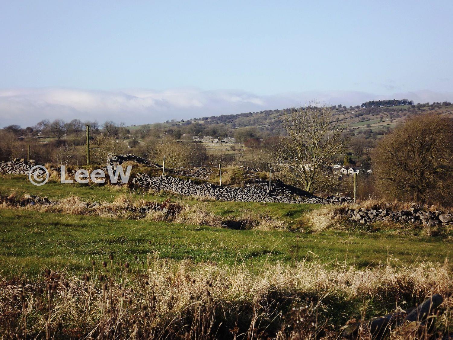View to a large shaft mound to the northwest end of the vein with either part of a walled belland yard of parts of a coe. Viewed from the Hallicar Lane (December 2012). The mine could do with a closer look