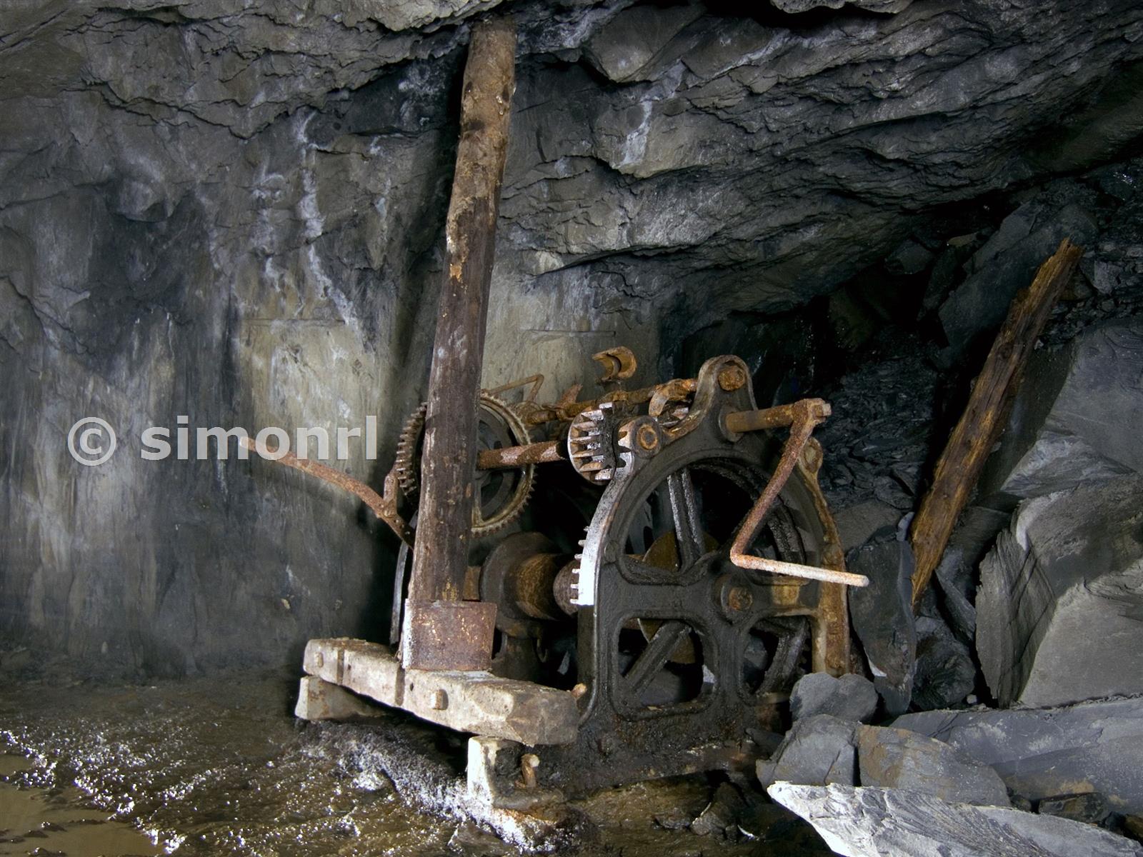 Hand winch, level25b approx chamber 10b or 11b All locations worked out from survey in Slates from Abergynolwyn, courtesy of Thorpey Bryn Eglwys 11/05/2009