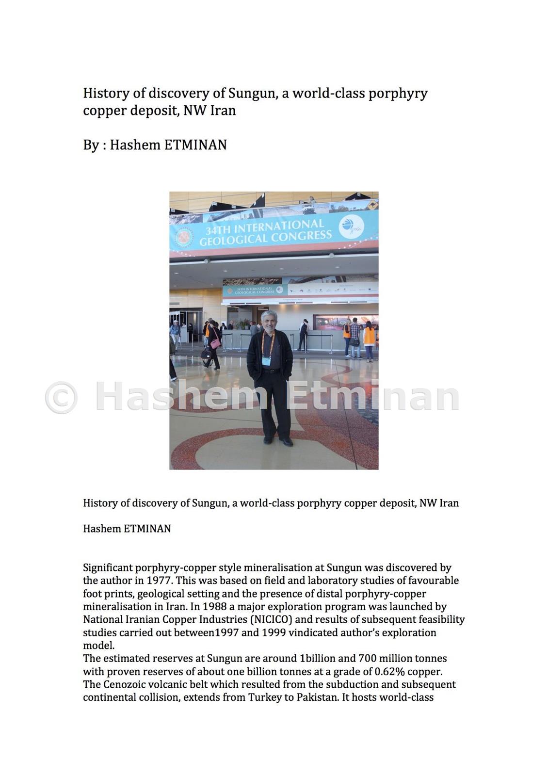 History of discovery of Sungun, a world-class porphyry copper deposit, NW Iran Hashem ETMINAN