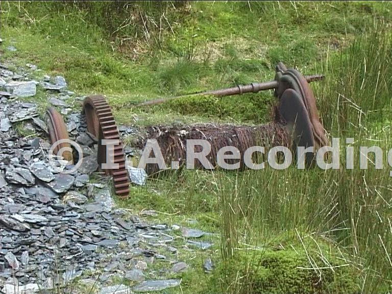 Haulage winch complete with rope, partially buried in a spoil tip near Engine shaft. [Grab from 12th July 2002 video]