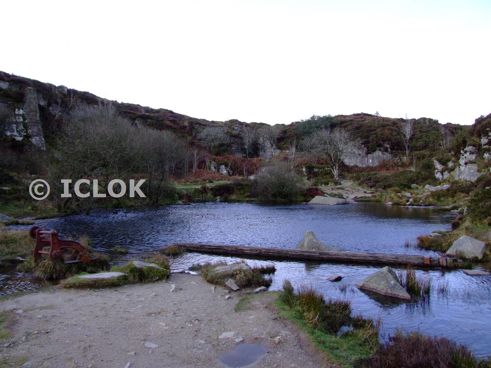Haytor Quarry, Old timber crane jib in foreground
