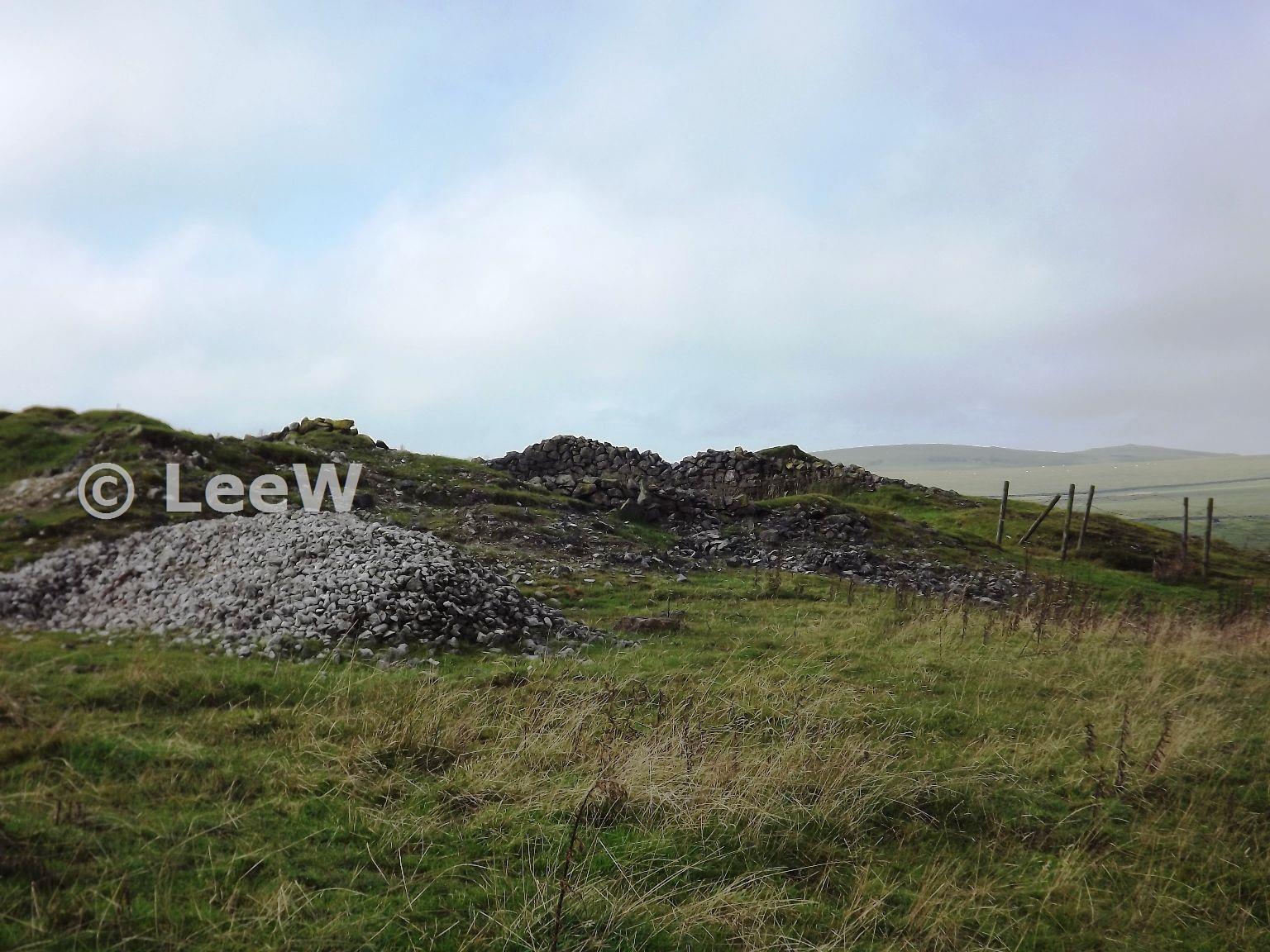 View of Hazard Mine showing the fenced shaft and walls of the gin circle and belland yard. Oct 2011
