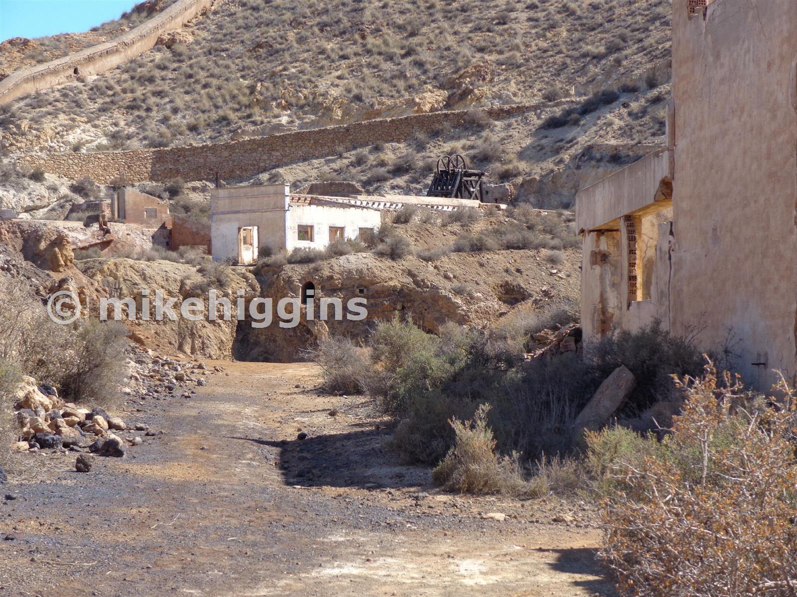 View of the headframe and associated buildings from the quarry-like excavation to the west. Note large flue ascending the hillside beyond.
