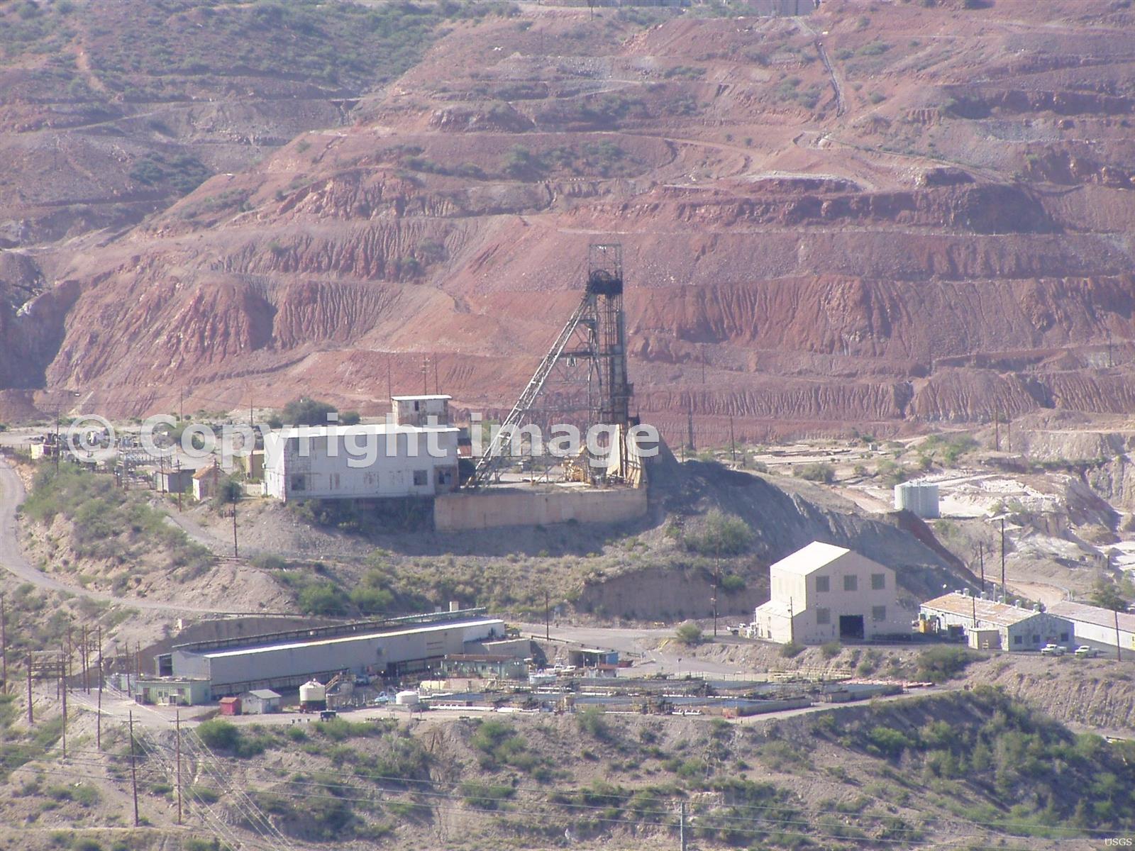Long-distance shot of headframe in Miami-Globe mining district. Courtesy USGS