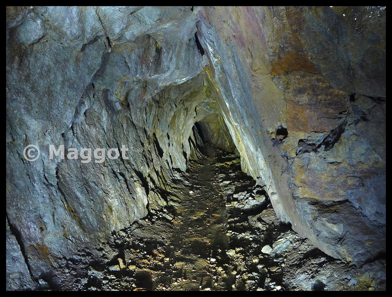 South South lode, Upper Level. Impressions of long gone rails to the adit mouth left on the floor. I can only assume the replacement bus service has also ceased by now.