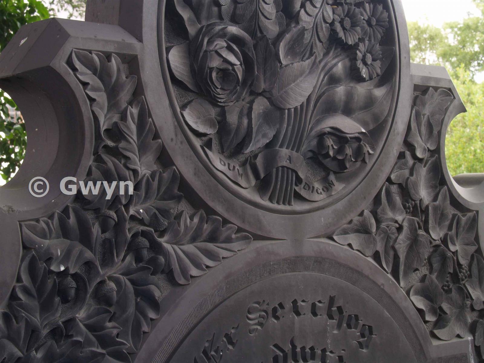 Carved, slate, grave headstone. Glanogwen Church. Bethesda. 2008.