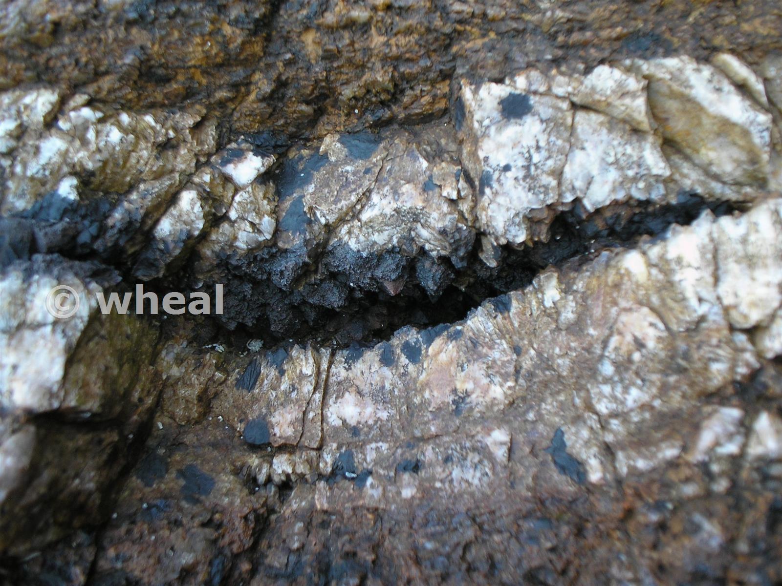Close-up of lode showing cassiderite crystals. Hermon is still considered a good bet for tin but environmental reasons will probably prevent it being worked again.