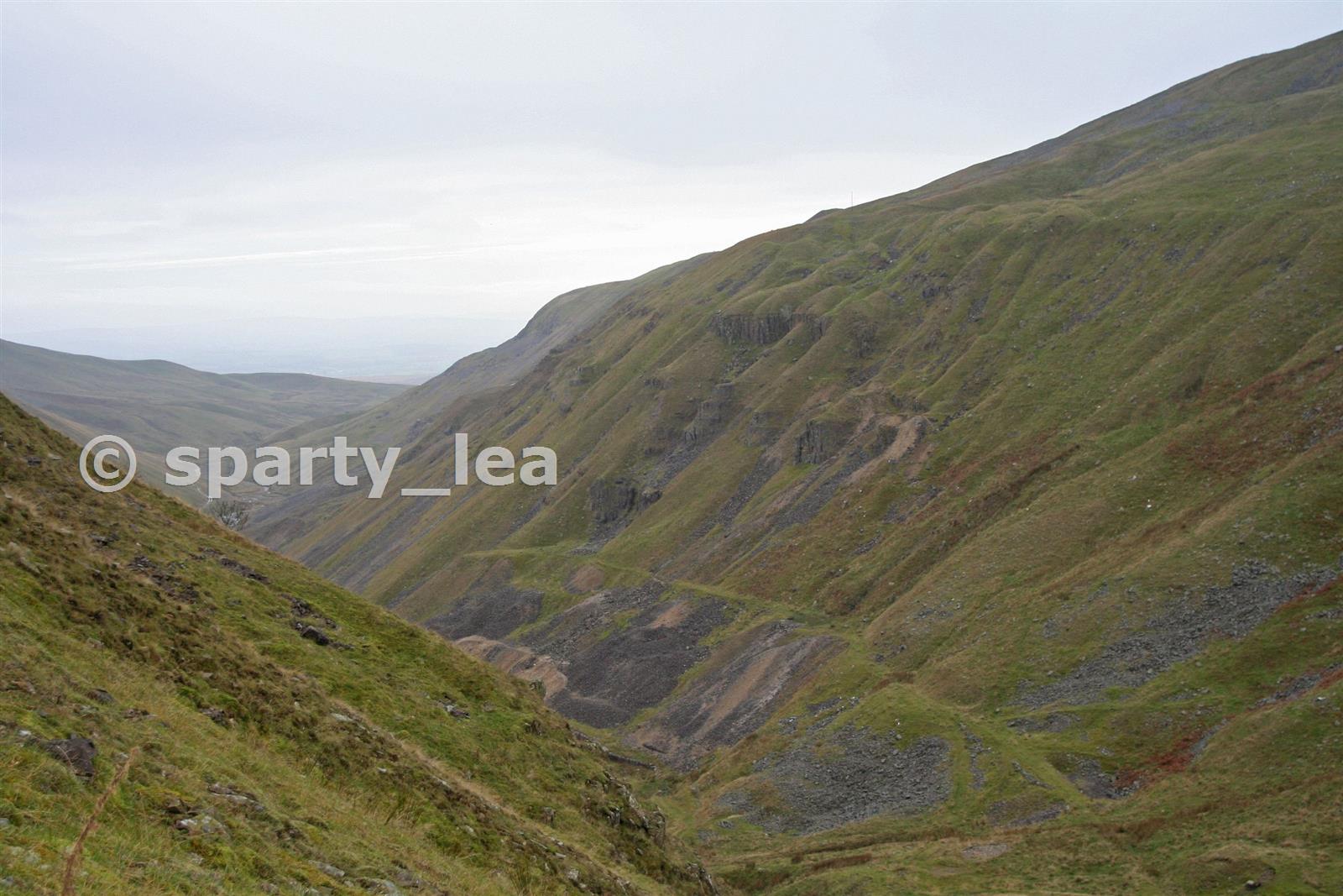 Looking across the heasd of Scordale. Mine tips and the site of the Hilton Mine Plant.